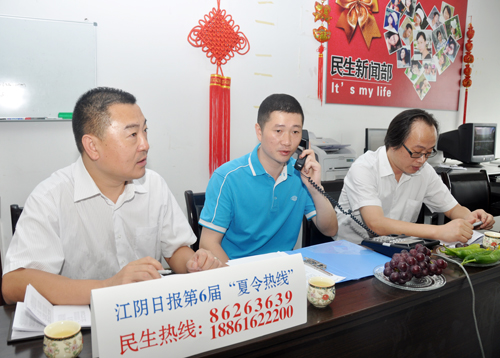 “我们江阴的现行水价是多少?”、“水费缴费卡怎样办理?”、“夏季用水应有哪些注意事项?”……7月17日,公司总经理助理曾武、质量管理中心主任孙正杰、客服中心副主任吴敏来到《江阴日报》社,参加“夏令热线”活动,向广大市民简要介绍了今夏饮用水安全保障工作情况,热心解答了市民提出的各项涉水事项,受到普遍好评。