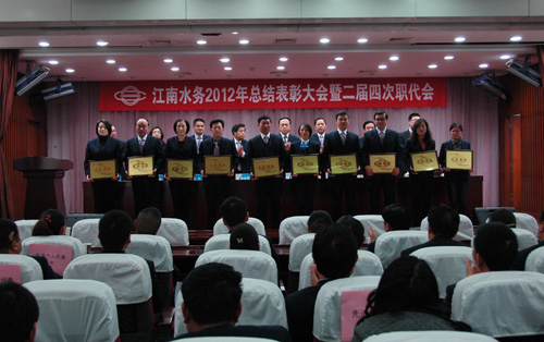 1月21日,公司在14楼会议室召开2012年度总结表彰大会暨二届四次职代会。公司党委书记、董事长龚国贤作重要讲话,总经理沙建新作题为《提振信心 凝聚合力 奋发实干开创水务事业新局面》的2012年度总结报告,并详细部署2013年度工作,明确了今年的各项工作目标任务。会议由副总经理高立主持。
