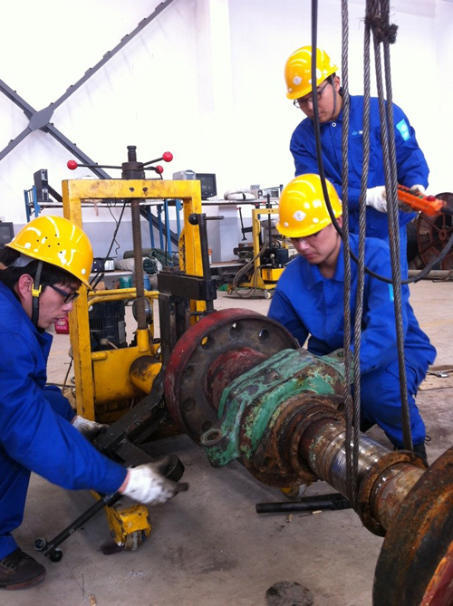 在维修保养中,机电维修中心坚持 “多、快、好、省”4字方针,“多”则是多检查、多动脑、多分析,合理调配,统筹兼顾,制定科学合理的维护保养计划;“快”则是做到行动快、进展快、速度快,提高执行力,提升工作效率,力争提早完成保养任务;“好”则是做到工艺好、技术好、协作好,按照相关技术规范对水泵实施维护保养,确保维修质量;“省”则是省材料、省工时、省费用,勤俭节约,节能降耗。