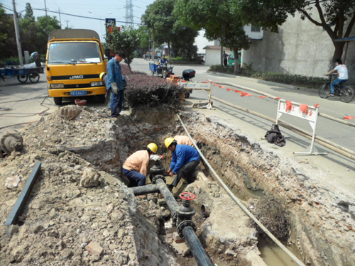 针对这种情况,长泾营业所积极寻求解决方法,在取得公司的大力支持下,决定对该片区实施管网改造,并会同设计所,多次查看现场、分析管道走向、走访用水企业,科学设计新的供水管网图纸,施工人员及时进场施工,废除旧供水管道,结合户表改造,重新辅设新管网。