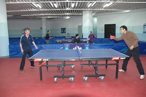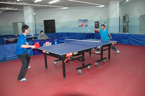 每年,公司都会与检察院举办乒乓球友谊赛,为彼此的乒乓球爱好者提供了一个切磋技艺、快乐健身、增进情谊的平台,体现了一种向上的人生态度和良好的精神风貌。本次参赛的人员共有12人,年龄最大的年近六十,最年轻的才二十几岁;裁判员由双方平时的指导教练担任;分6个参赛小组,先由前3组同时上场比赛,不比赛的人员担当小组裁判;比赛采取一对一的单打形式, 5局3胜制。