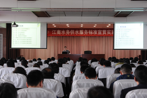 自2013年6月被确定为江苏省服务业标准化试点项目以来,公司上下统一思想、统筹兼顾落实各项工作,目前已颁布《供水服务标准体系》并进入全面实施评价阶段。公司各条线各部门各岗位充分利用标准试点实施的时间,开展形式多样的贯标达标活动,让标准理念入心、让标准规范上手。通过实施--检查--反馈--修正的流程,建立循环完善的长效机制,使之真正成为公司服务效能持续提升的有力保障,进而促进水务事业的有效发展。下一阶段,公司将进一步完成自检自评自修工作,对照验收标准,逐条打分,逐项完成,确保供水服务标准化试点工作高规格、高质量通过省级验收。