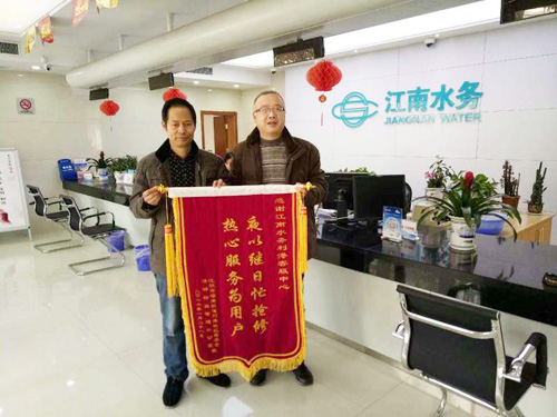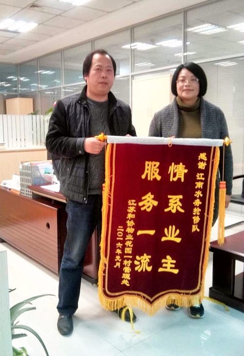 1月28日,利港社区及港郦物业给利港客服中心送来一面 “夜以继日忙抢修 热心服务为用户”的锦旗。