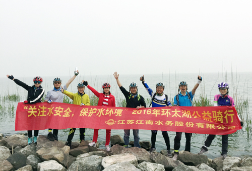 “关注水环保,保护水环境。倡导低碳生活,践行社会责任”,4月中旬,公司9名公益环保志愿者,从江阴出发,途经无锡、苏州、湖州、宜兴,沿顺时针方向开展环太湖公益骑行活动,一路倡导节约用水、低碳出行的生活理念。
