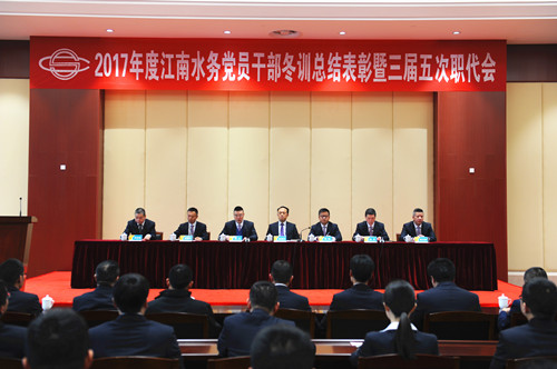 2月2日,公司召开2017年度党员干部冬训、总结表彰暨三届五次职代会。会议由公司副总经理高立主持,总经理华锋作题为《不忘初心 不负未来 勠力同心开创水务事业新局面》的工作报告,公司党委书记、董事长龚国贤作冬训动员讲话。