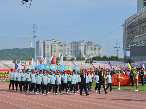 2021年10月25日上午,由公司总经理池永、副总经理高立带领49名水务员工组成的代表队,在市体育中心参加了市第八届全民运动会开幕式。